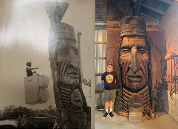 9/1/25 - Trail of Tears; Peter Toth's Trail of the Whispering Giants, Mandan, ND (left - now; right - original)